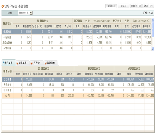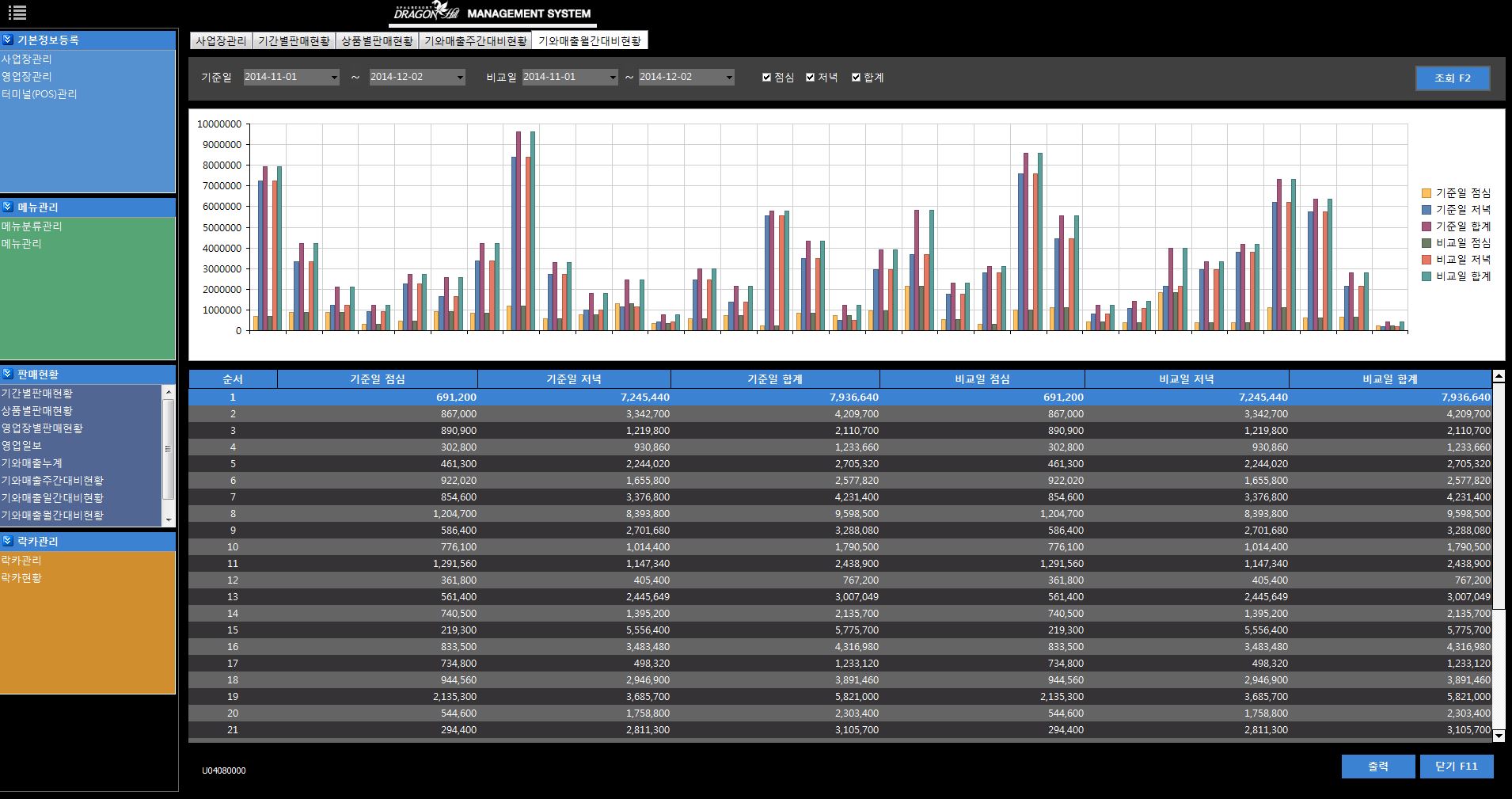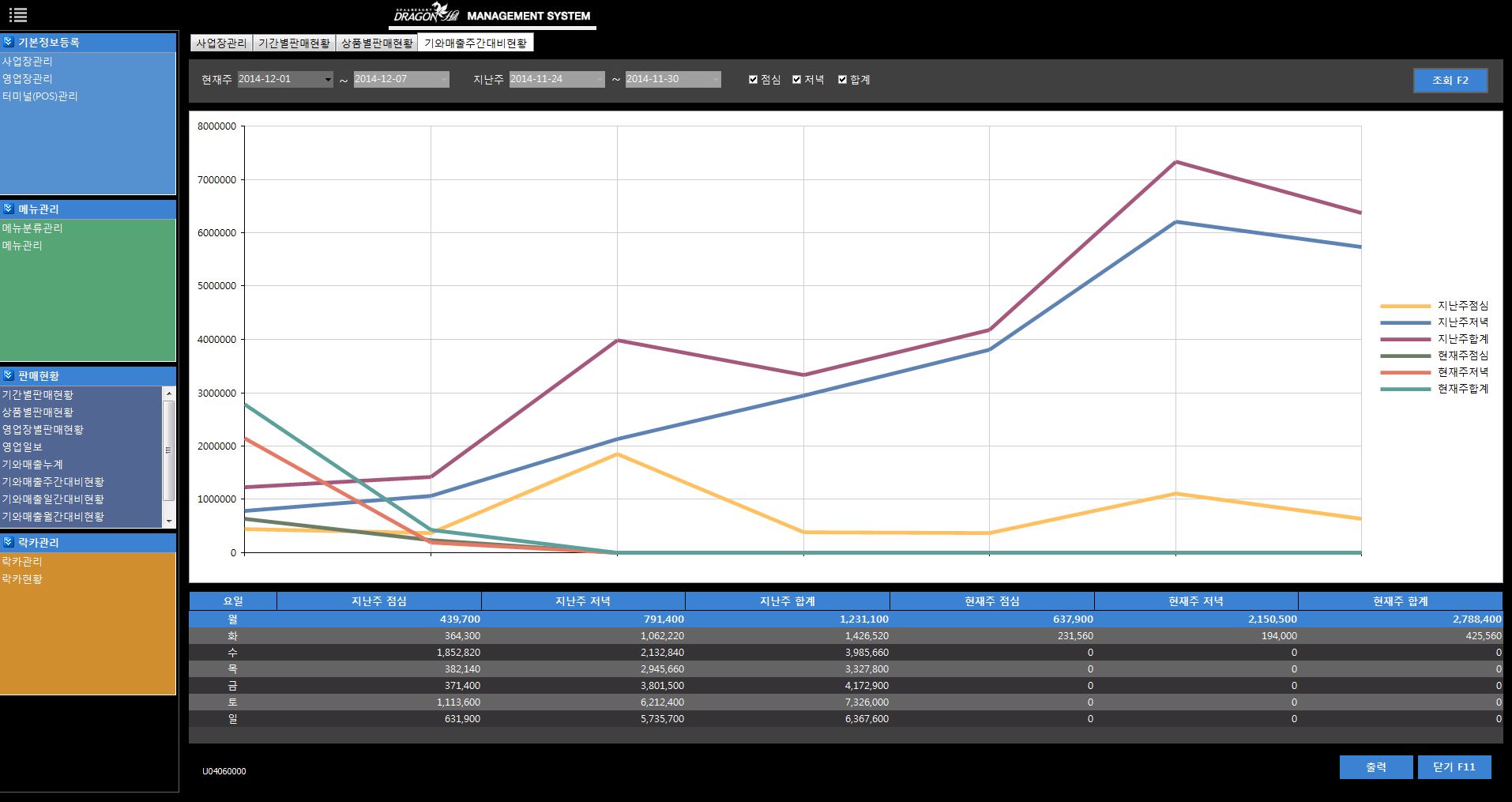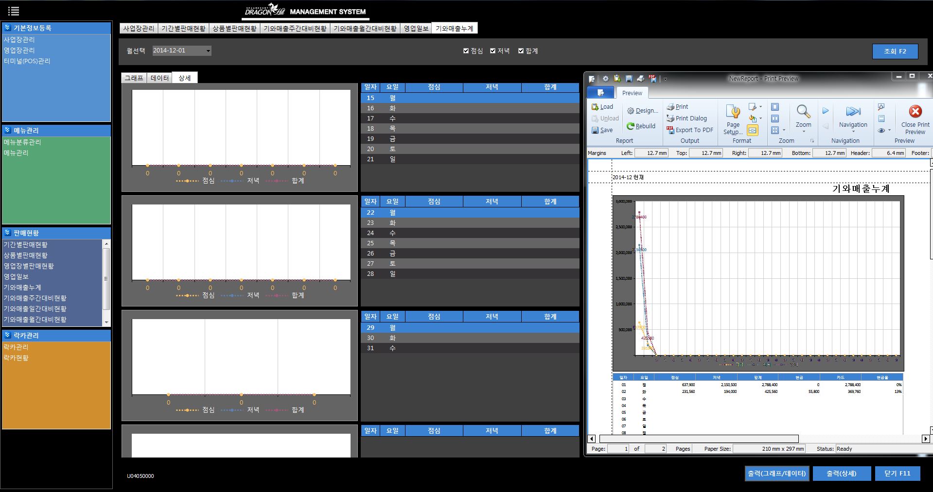 전 영업장 실시간 정보, 일일 자료, 분석정보