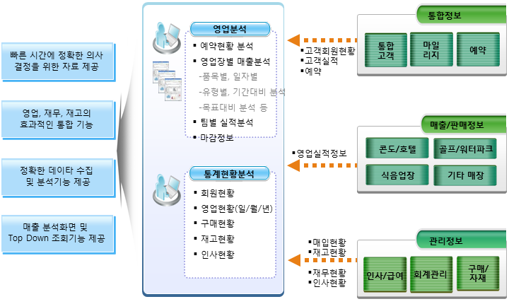 향후 F/O,B/O를 연계 통합한 현황 파악 의사결정을 위한 경영정보 및 마케팅정보 제공 기만 마련